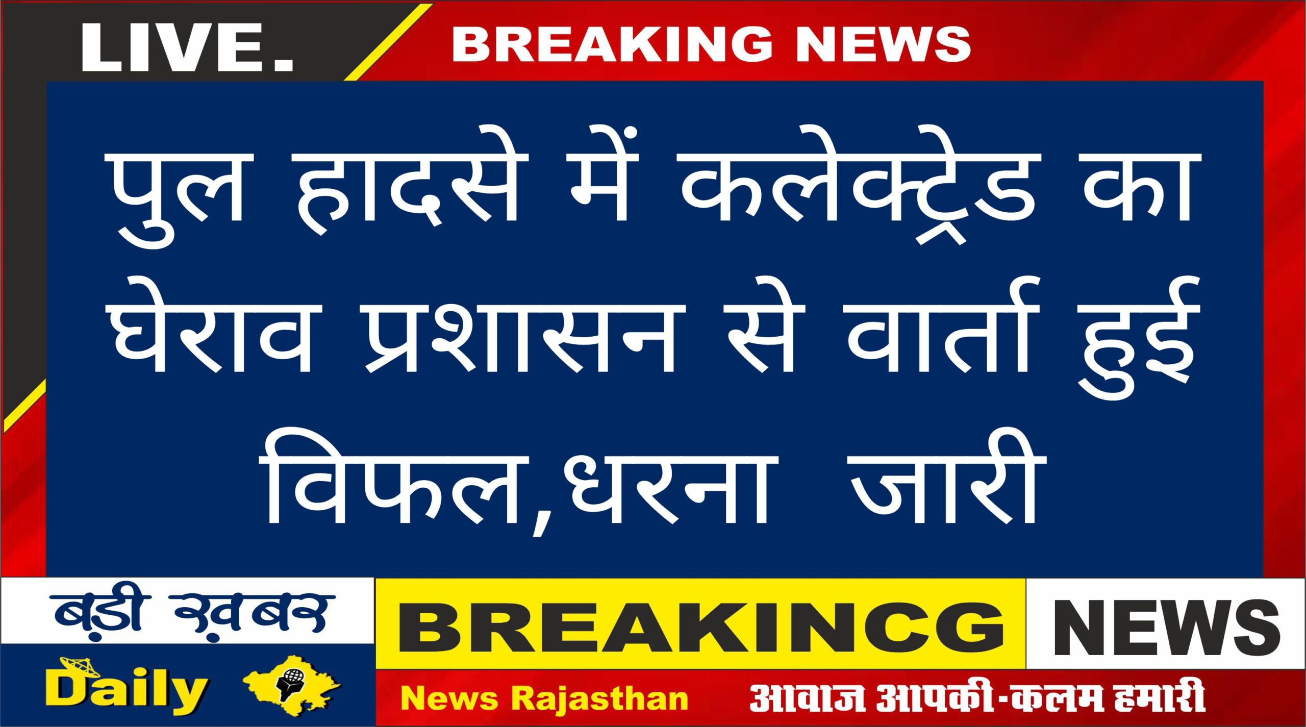 पुल हादसे में कलेक्ट्रेड का घेराव प्रशासन से वार्ता हुई विफल,धरना  जारी