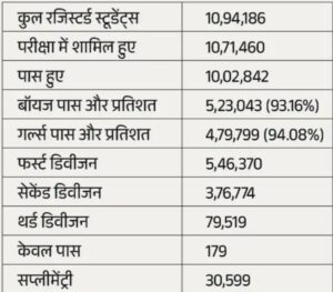 बोर्ड सचिव कैलाश चंद्र शर्मा ने बताया- इस साल 10वीं में 10 लाख 71 हजार 460 स्टूडेंट्स शामिल हुए थे। इनमें 10 लाख 02 हजार 842 स्टूडेंट्स पास हुए।